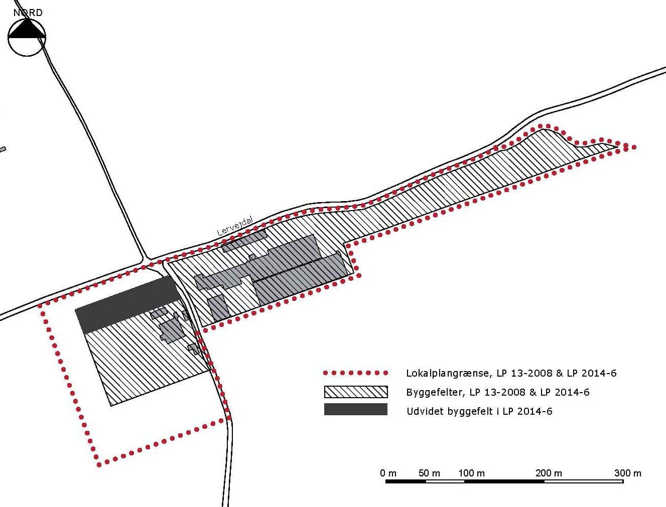 I forhold til tidligere lokalplanlægning er byggefeltet placeret ved støjvolden mod Lervejdal udvidet.