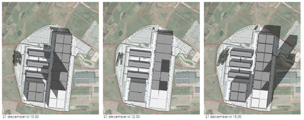 På billedet er vist skygger den 21. december, hvor skyggepåvirkningen er mest markant.