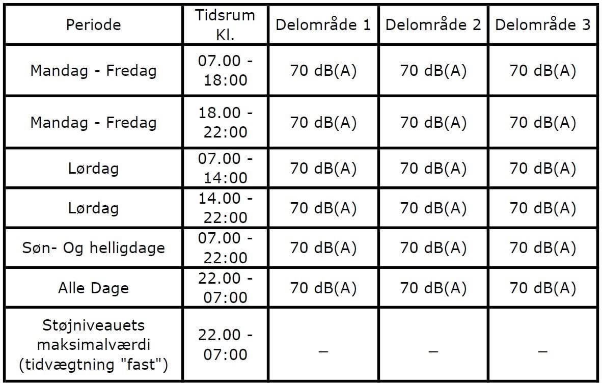 Lokalplanen indeholder bestemmelser om støjgrænser. For samtlige erhvervsvirksomheder gælder, at de skal respektere Miljøstyrelsens vejledende støjgrænser ved de omliggende boliger. I forbindelse med miljøgodkendelse af virksomheder vil der blive stillet krav til, hvor meget støj virksomheden må bidrage med. Derudover gælder følgende krav.