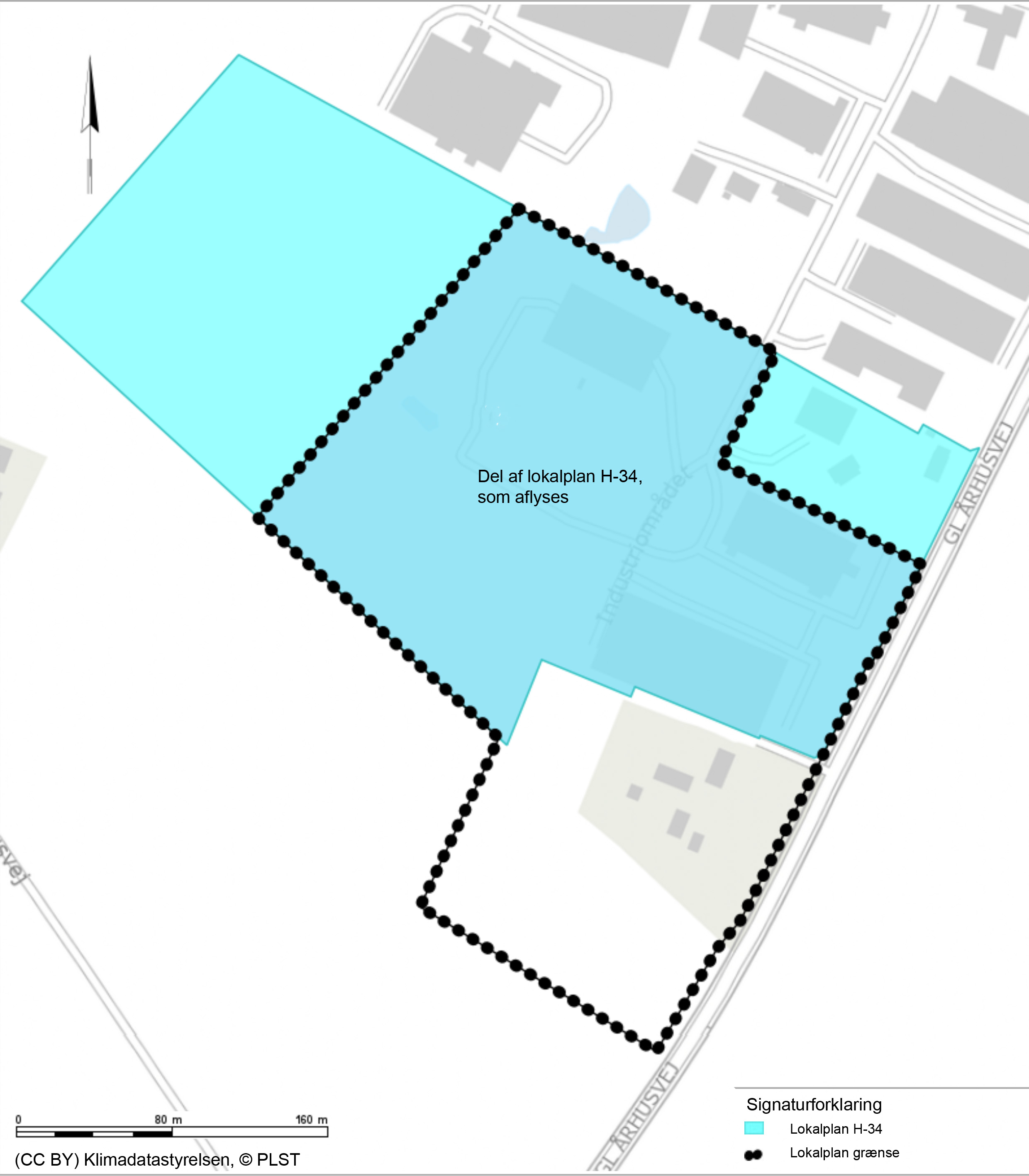 Illustration over eksisterende lokalplan h-34. Illustrationen angiver del af Lokalplan H-34, som aflyses