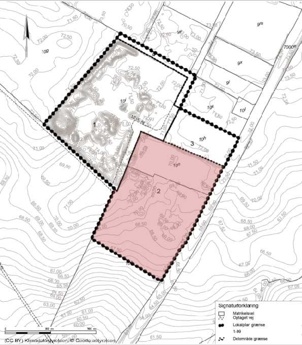Oplagspladsen etableres mindst i en højde på 60 cm over eksisterende terræn og som minimum i kote 74 DVR90 for at sikre hældning mod spildevandsystemet i adgangsvejen. Inden for arealet sikres plads til en pumpestation.