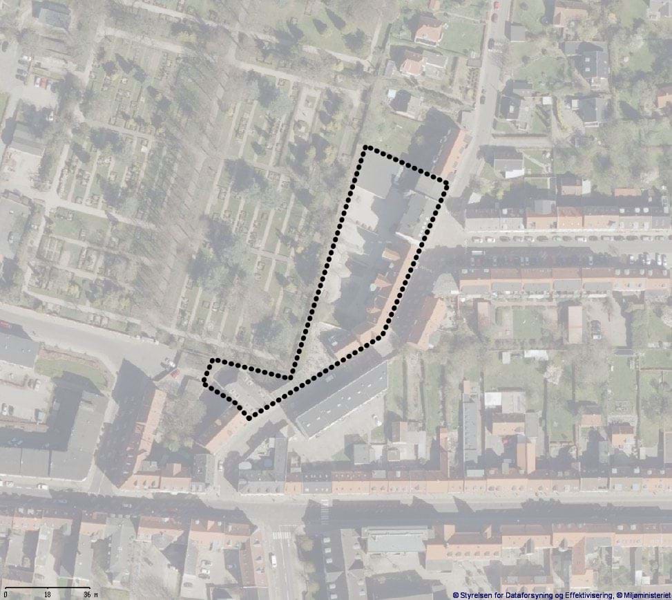 Lokalplanområdet er på ca. 3.800 m² og er beliggende i tæt bymæssig sammenhæng ved bymidten i Horsens. Vest for området ligger Nordre Kirkegård, grundlagt i 1835. Nordre Kirkegård er udpeget i Kommuneplan 2013 som kulturmiljø.