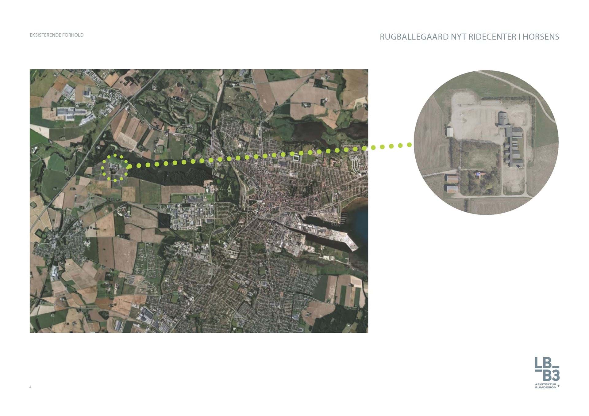 De eksisterende bygninger på Rugballegård består af en tidligere beboelsesbygning og service- og staldbygninger.