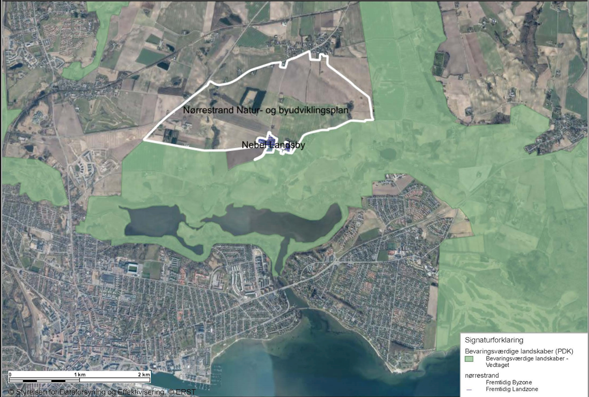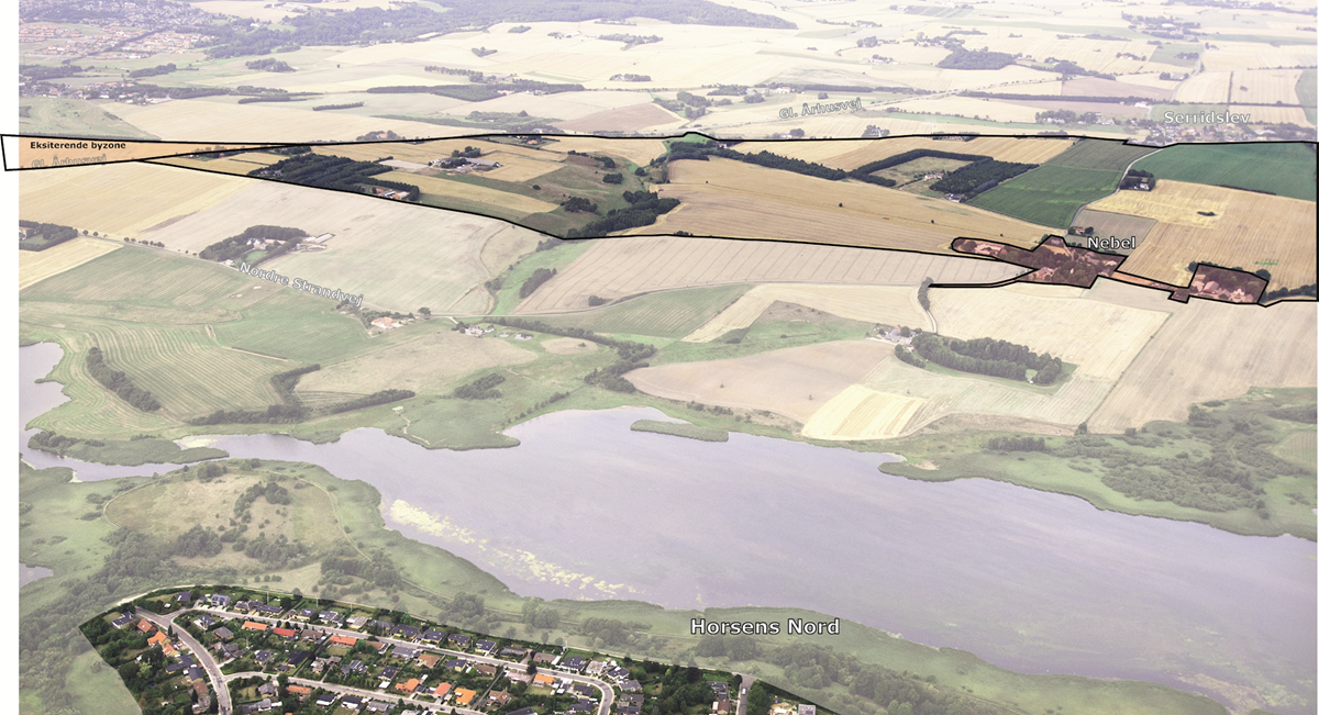 I Tematillæg for Byudvikling">Byudvikling til kommuneplan 2021-33, udlægges en kommuneplanramme for Nebel landsby og en rekreativ ramme, som omgrænser Nebel - dog med undtagelse af den sydlige del, som er beskyttet af en landskabsfredning fra 1983.