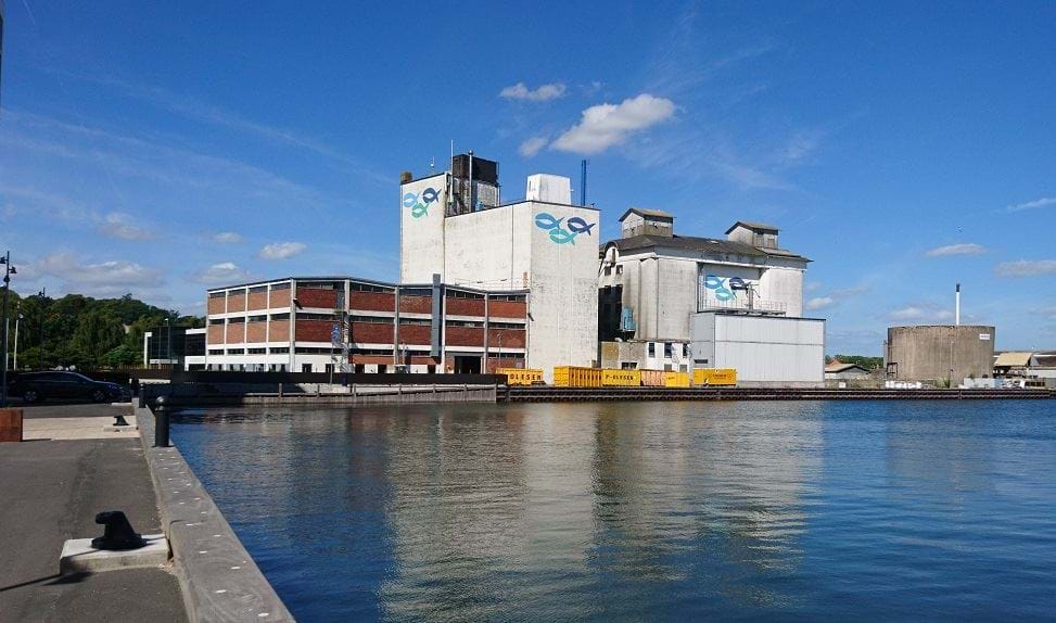 Danafeeds bygninger set fra Havnetrekanten, Niels Gyldings Gade og Ny Havnegade.