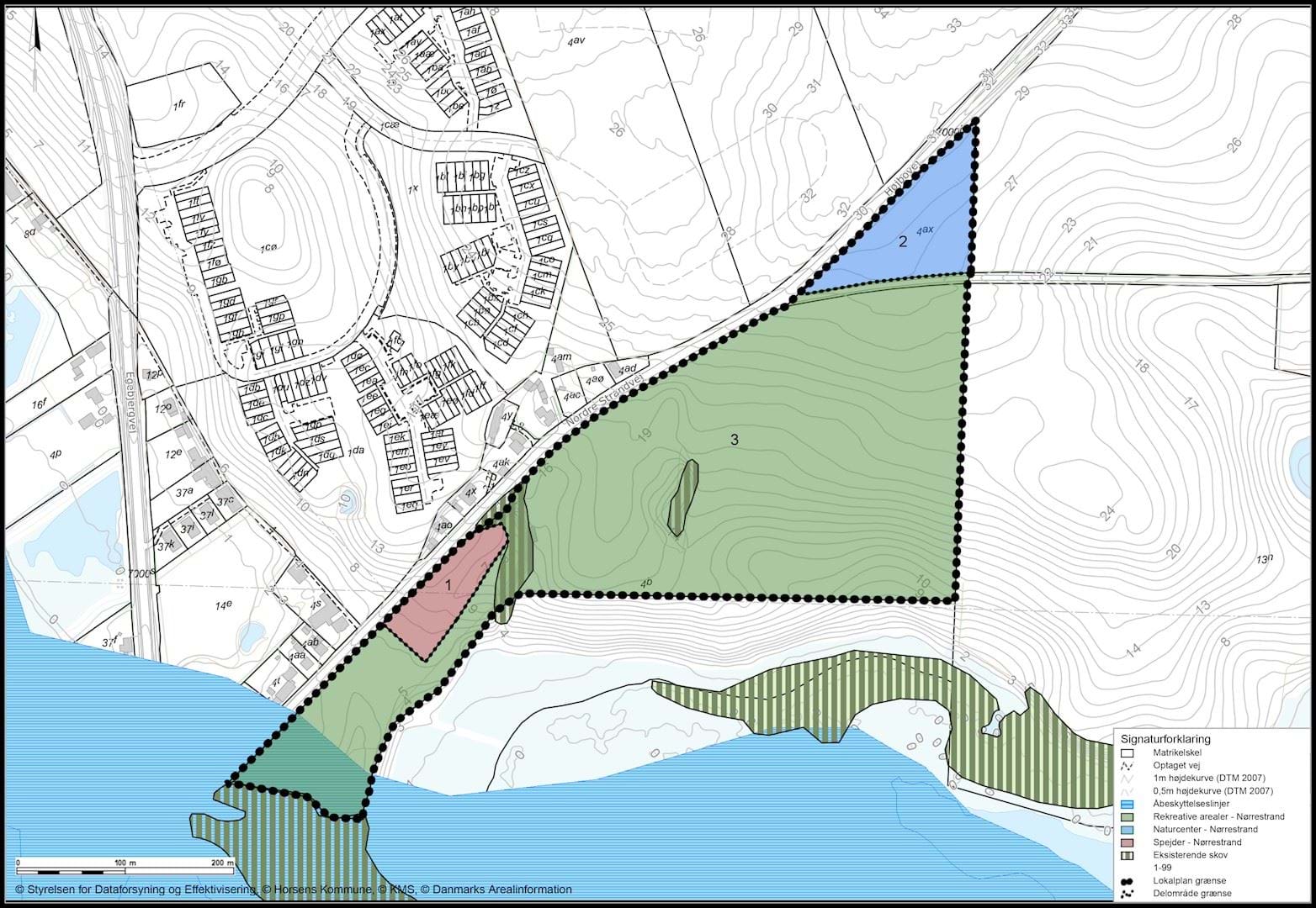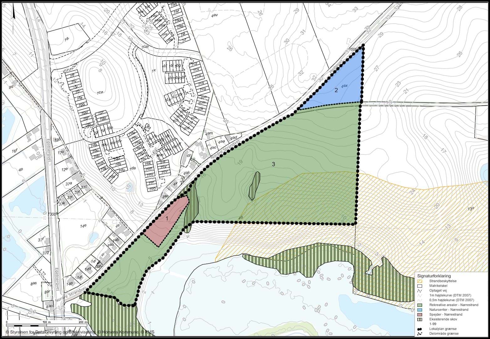 Strandbeskyttelseslinjen rammer kun det sydlige hjørne som ikke bebygges, eller ændres på.