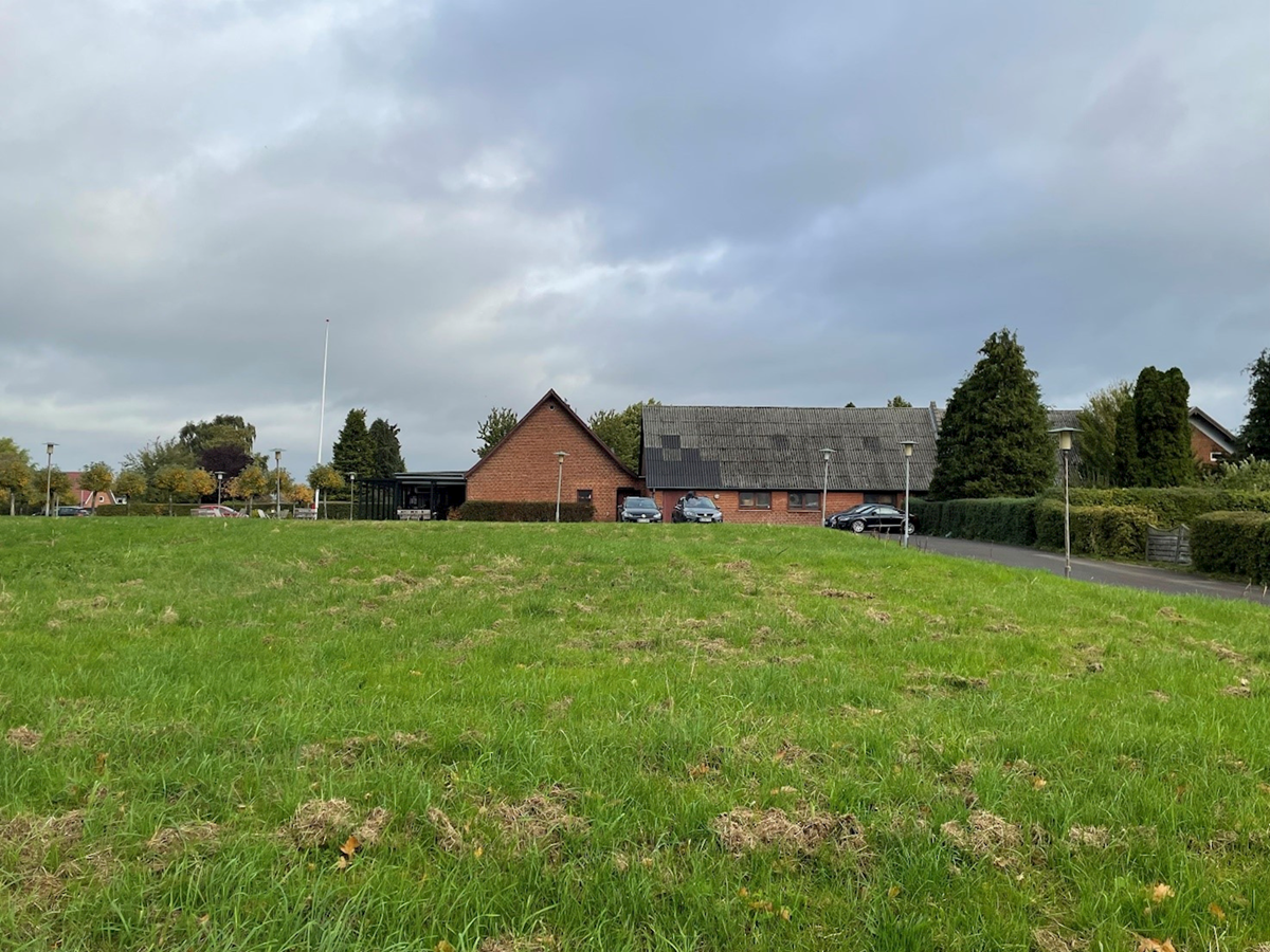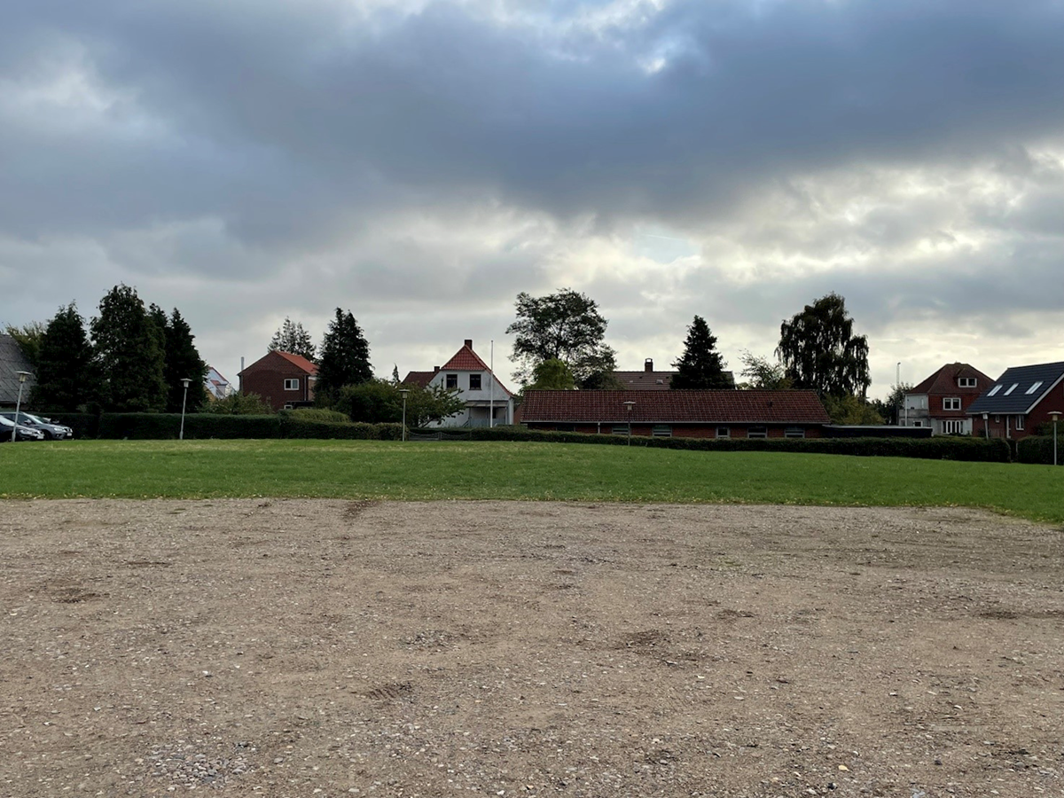 Foto af lokalplanområdet med boligerne, der ligger øst for området.
