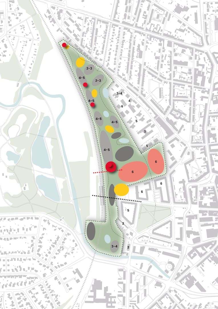 Med planlægningen af en ny bydel med op til 1.500 nye boliger og mulighed for en bebyggelsesprocent på op til 180 i Kommuneplan 2021-33 vil der ske en fortætning af området. Planlægningen skal sikre at bydelen tilpasses områdets skala, detaljeringsgrad, den menneskelige skala og at der i fortætningen skabes gode forbindelser, mødesteder, rekreativ værdi og veldefinerede byrum.