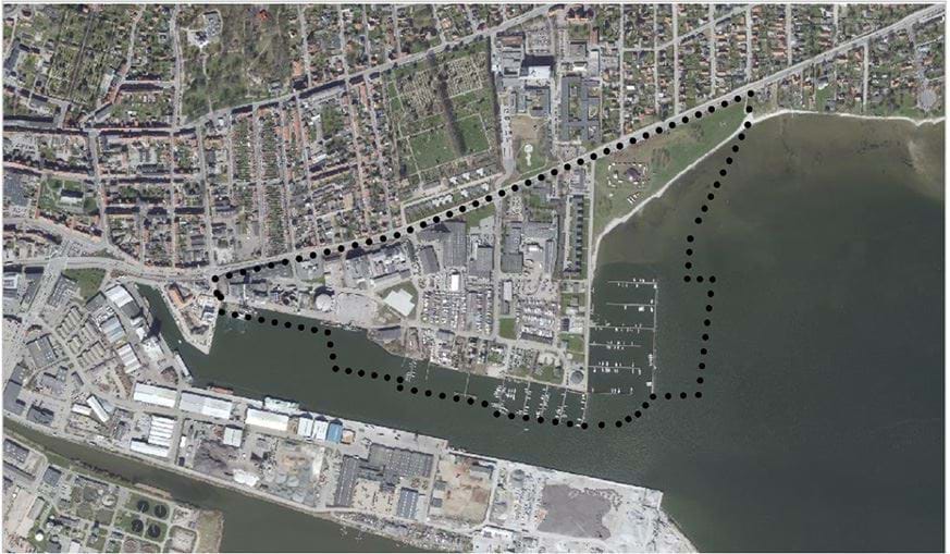 Lokalplanen omfatter Masterplanens delområder Nordhavnen og Havneøen, hvor omdannelsen forventes at komme i gang først. Endvidere Bystranden/Langelinie indgår fordi den visuelt og funktionsmæssigt har sammenhæng med lystbådehavnens område. Havnetrekanten er udeladt, fordi den allerede er lokalplanlagt og byggeriet er igang.