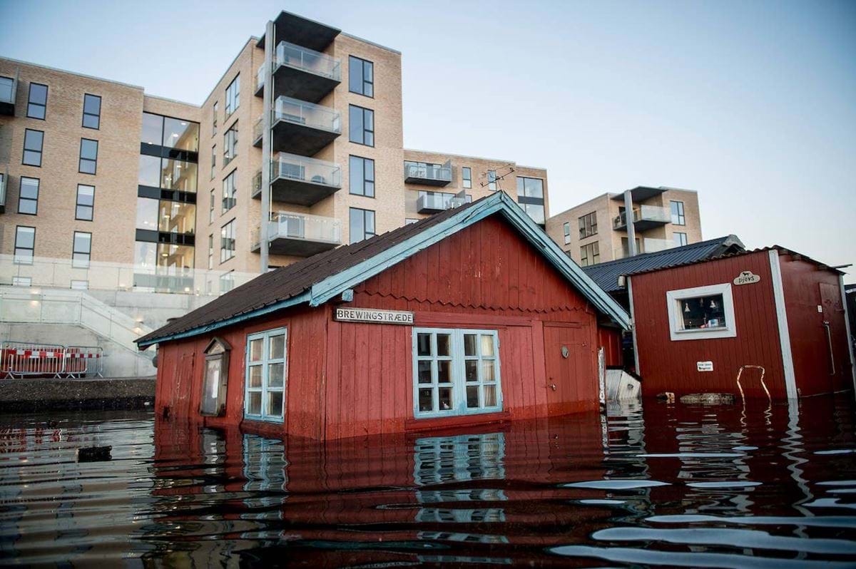 Området ligger i risikoområde for oversvømmelse og der er også jævnligt oversvømmelse i området. Årsagen til oversvømmelse er det lave terræn med bygninger i ned til kote 1,0 DVR90. Der er etableret et mindre dige foran kulturmiljøet ved skurbyen, men dette sikrer kun vand mod en side, og der opleves fortsat oversvømmelse fra bagsiden og ved Nyboder.
