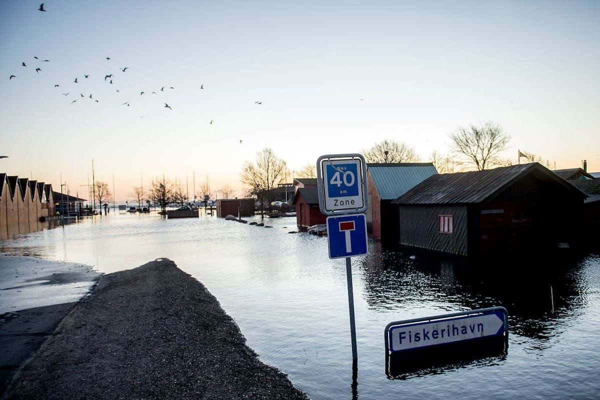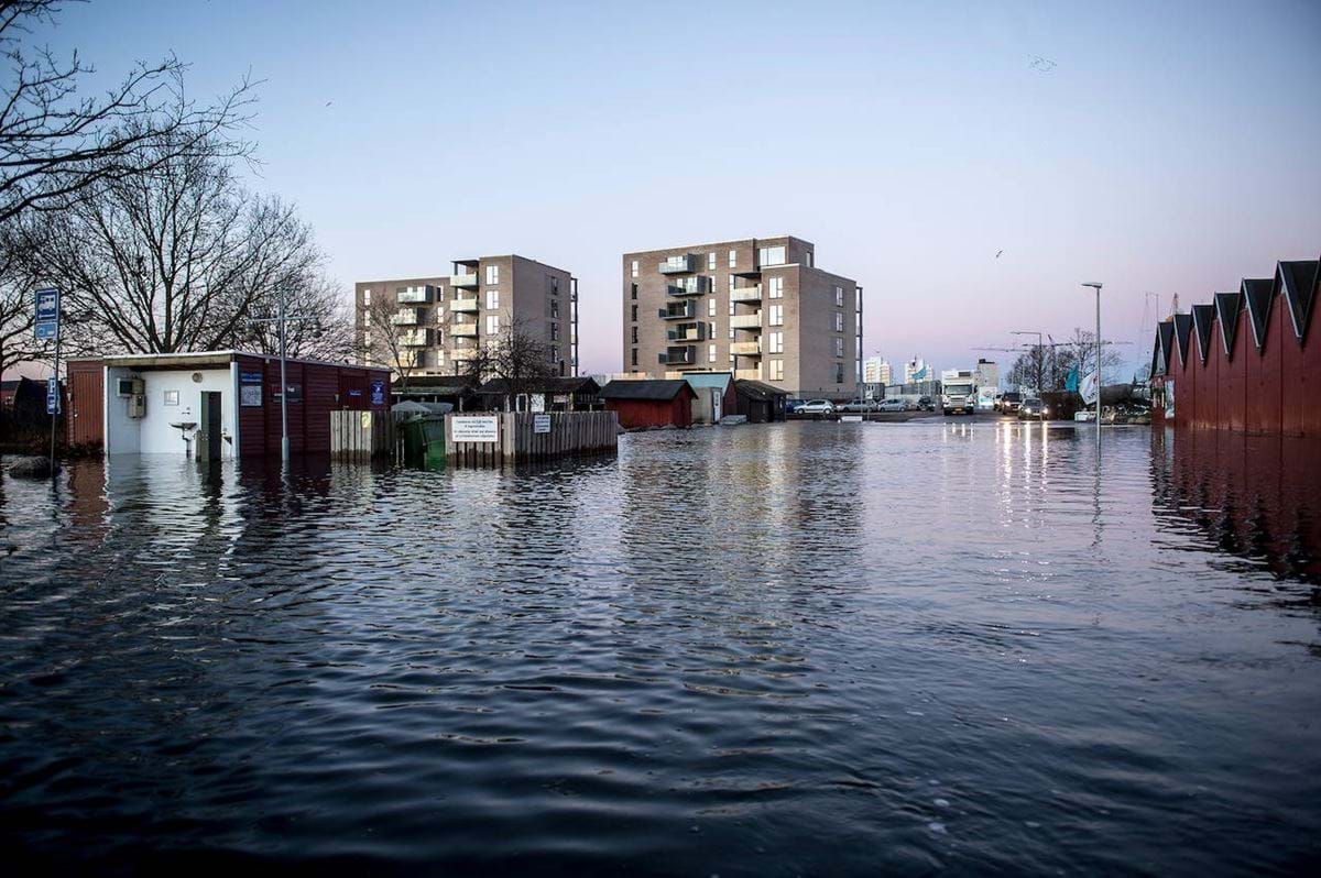 Der er jævnligt oversvømmelse på Horsens Marina i dag.