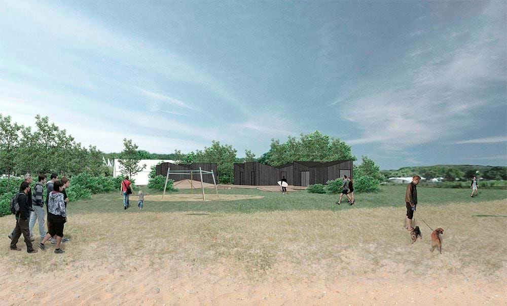 Bebyggelsen erstatter to eksisterende containere og trækkes tilbage fra de kystnære strandarealer og får en funktionel sammenhæng med Husoddevej og det nyindrettede parkeringsareal.