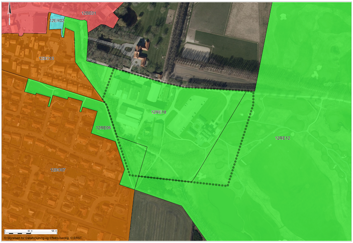 Indenfor lokalplanområdet er der 3 vedtagende kommunerammer, hhv. 12RE06, 12RE18 og 12RE12.