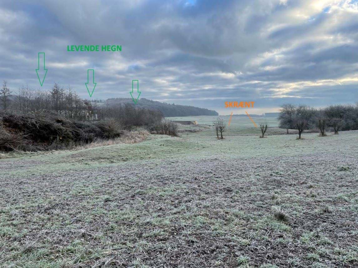 Billede 2A er taget fra Husoddestien på stykket mellem Stensballe By og Elbæk Skov. Stien ligger på dette stykke ca. i kote 6,5. Terrænforholdene er ensartede på og langs det pågældende stistykke, og det er således uden betydning hvorfra billedet på stien tages fra – konklusionen vil være den samme.