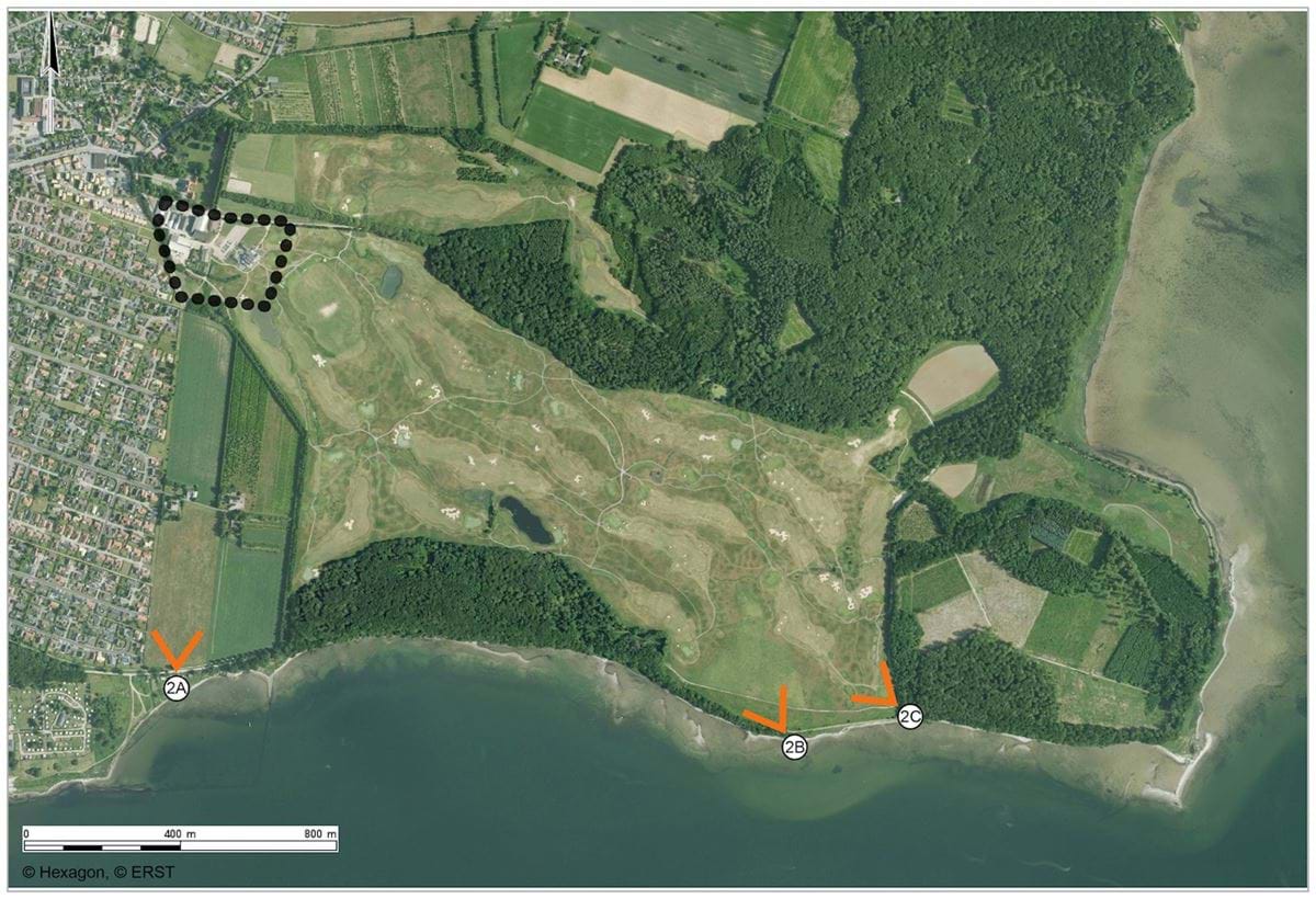 Billede 2C er taget fra hjørnet af golfbanen på husoddestien (ca. 4 m over stiniveauet), hvorfra der ca. er 2 km. op til klubhuset. Fra Husoddestien er der meget begrænset udsyn til klubhuset og øvrige bygninger både pga. den store afstand, terrænforholdene samt Elbæk skov og Brakør Skov.