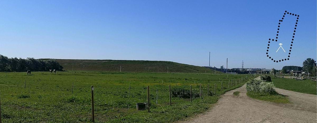 Mod syd fra Thorsgårdsvej er der i dag etableret en høj støjvold, se overstående billede, og da størstedelen af arealet indenfor konsekvensområdet for støjfølsom areal forsat skal benyttes til græsningsarealer for Horsens Sportsrideklubs heste, vurderes det derfor, at det ikke vil have nogen væsentlig påvirkning for det planlagte.