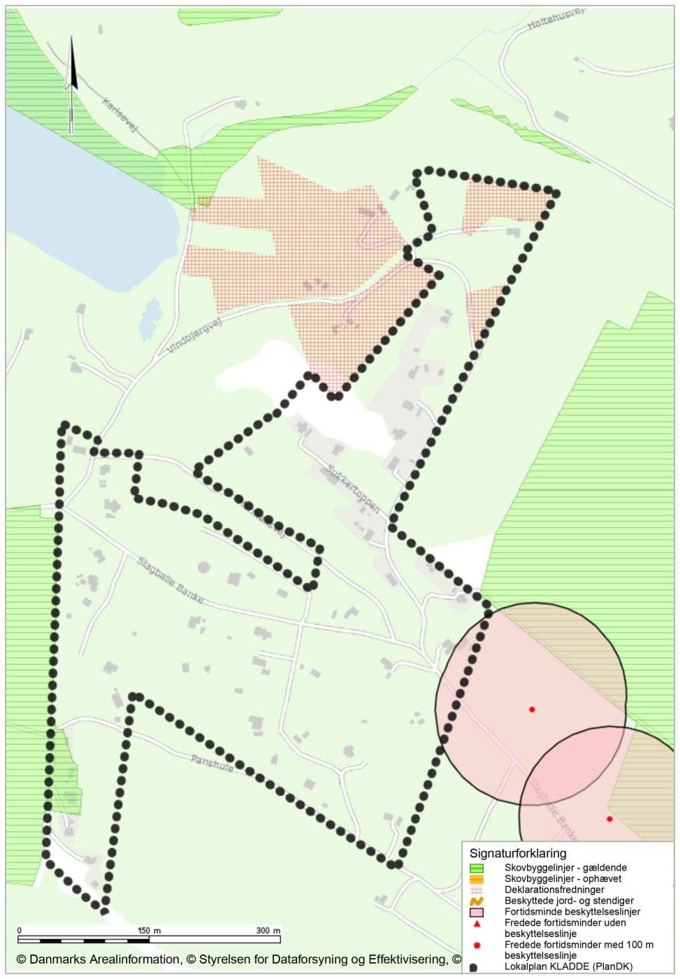 - Fredet rundhøj med 100 meter beskyttelseslinje (se nedenstående kort 1)