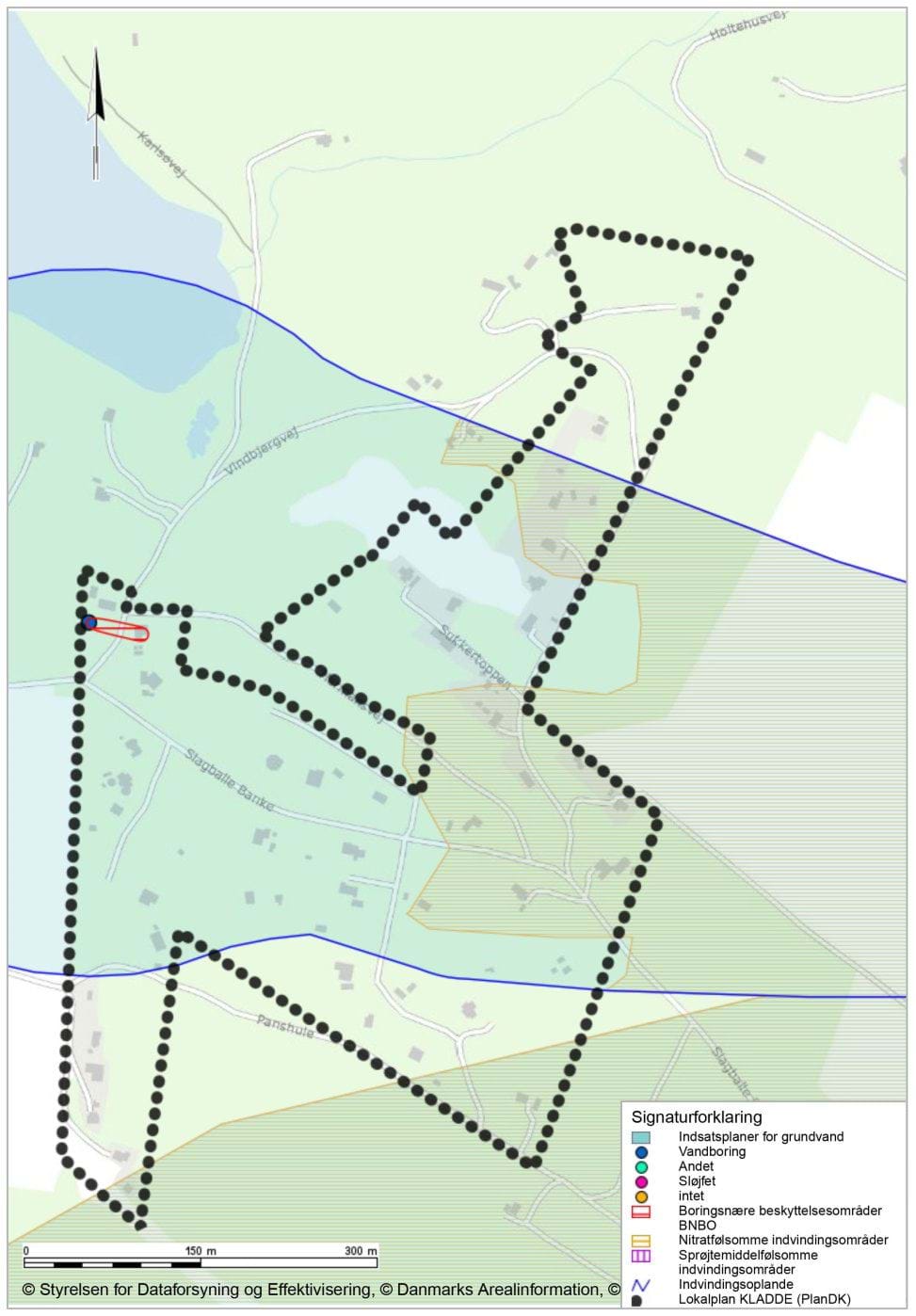 - Almen vandværksboring og Boringsnært beskyttelsesområde (BNBO) (se nedenstående kort 2)