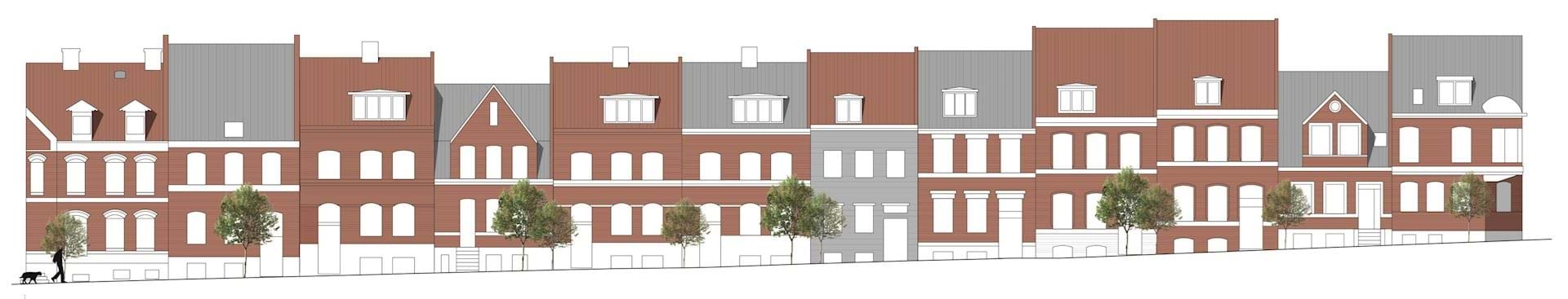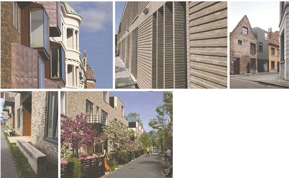 Referencefotos -Tilpasning af ny bebyggelse i gadeforløb, detaljering af facader og karakter i forhaver.