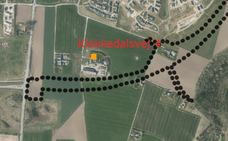 Der findes i nær tilknytning til lokalplanområdet for den nye ringvej et stort og et lille husdyrbrug, som er omfattet af husdyrbrugloven (LBK nr. 520 af 01-05-2019 om husdyrbrug og anvendelse af gødning m.v.). Klokkedalsvej 4, et større kvægbrug ligger i den østligste ende af området, jf. kortet herunder. Dette husdyrbrug har i forvejen begrænsede udvidelsemuligheder på grund af nærheden til byzone.